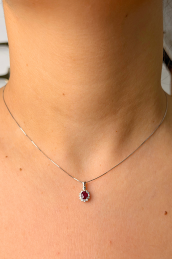 COLLANA IN ORO BIANCO 18K DIAMANTI E RUBINO
