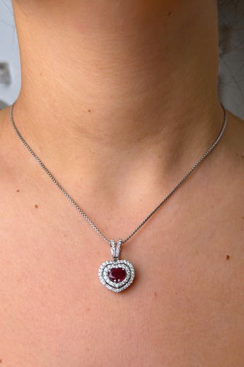 COLLANA IN ORO BIANCO 18K DIAMANTI E RUBINO