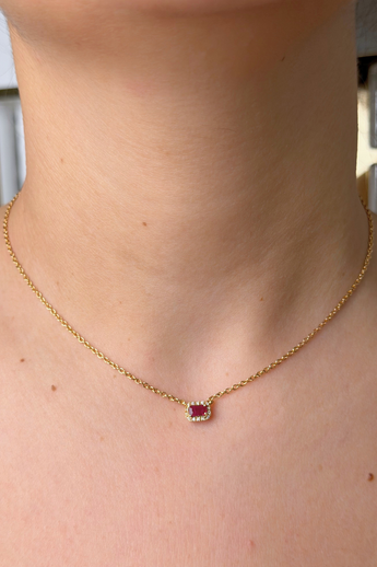 COLLANA IN ORO GIALLO 18K DIAMANTI E RUBINO