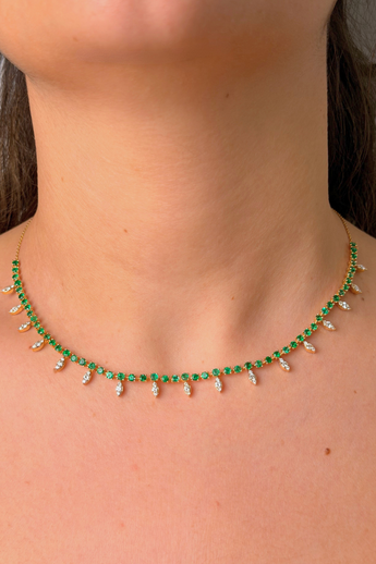 COLLANA FANTASY IN ORO GIALLO 18KT E DIAMANTI CON SMERALDI