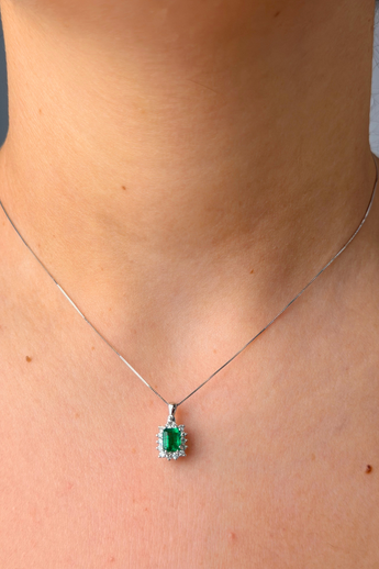 COLLANA IN ORO BIANCO 18K DIAMANTI E SMERALDO