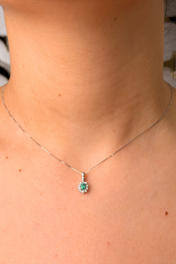 COLLANA IN ORO BIANCO 18K DIAMANTI E SMERALDO