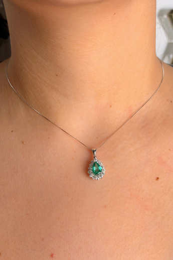 COLLANA IN ORO BIANCO 18K DIAMANTI E SMERALDO