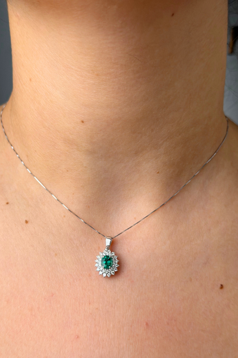COLLANA IN ORO BIANCO 18K DIAMANTI E SMERALDO