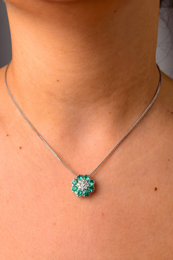 COLLANA IN ORO BIANCO 18K DIAMANTI E SMERALDO