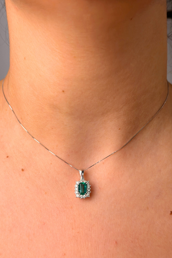 COLLANA IN ORO BIANCO 18K DIAMANTI E SMERALDO