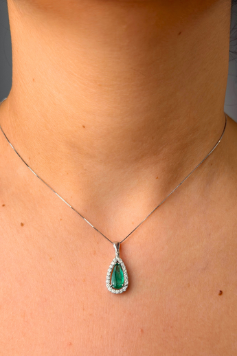 COLLANA IN ORO BIANCO 18K DIAMANTI E SMERALDO