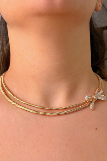 COLLANA FIOCCO TUBOGAS IN ORO ROSA 18K E DIAMANTI