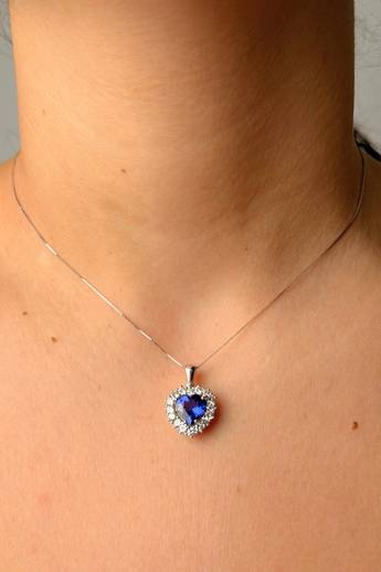 COLLANA CUORE IN ORO BIANCO 18K CON TANZANITE E DIAMANTI