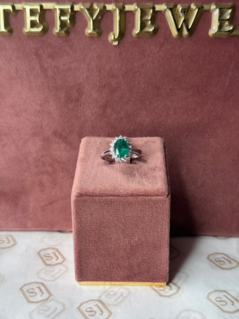 ANELLO IN ORO BIANCO 18KT CON SMERALDO E DIAMANTI