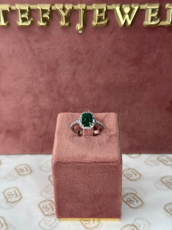 ANELLO IN ORO BIANCO 18KT CON SMERALDO E DIAMANTI