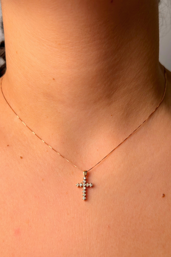 COLLANA CROCE IN ORO ROSA 18K E DIAMANTI