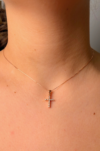 COLLANA CROCE IN ORO ROSA 18K E DIAMANTI