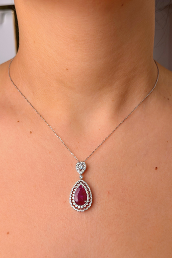 COLLANA IN ORO BIANCO 18K DIAMANTI E RUBINO